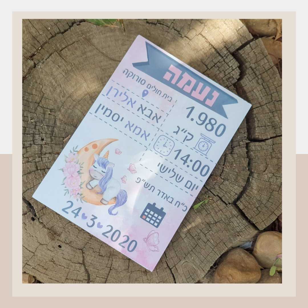 תעודת לידה מעוצבת – בלוק עץ 20*30