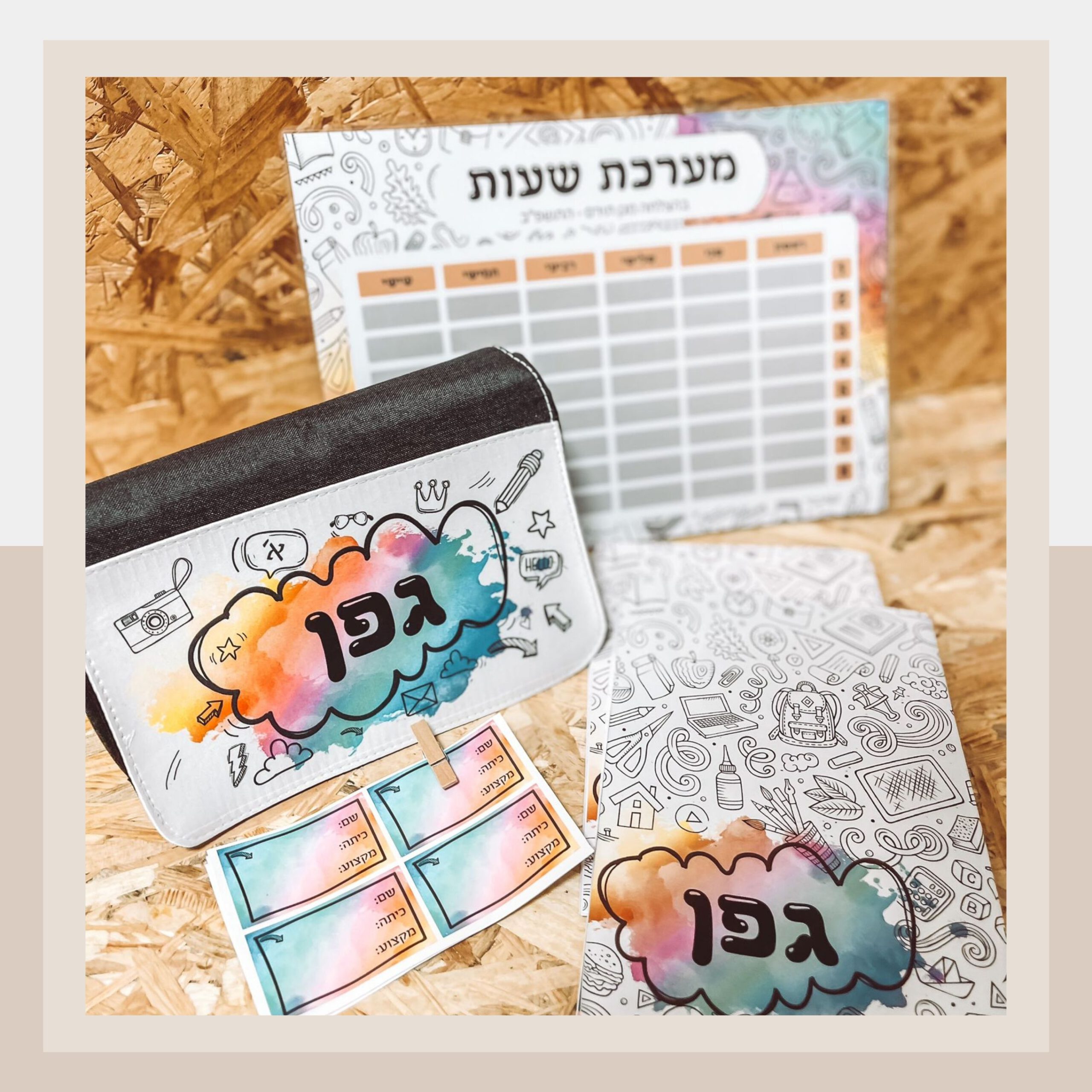 הסט לכיתה א' שלנו הוא הדרך המושלמת להבטיח שהילד יתחיל את השנה עם כל מה שהוא צריך, בצורה מסודרת ומעוצבת.
