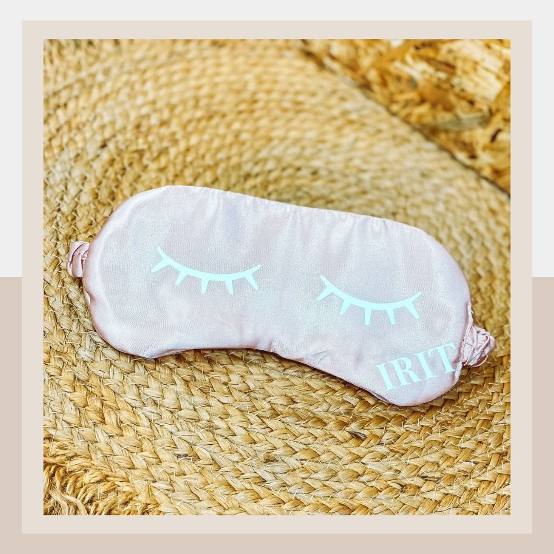 כיסוי עיניים בצבע רוז גולד, עשוי מסאטן.