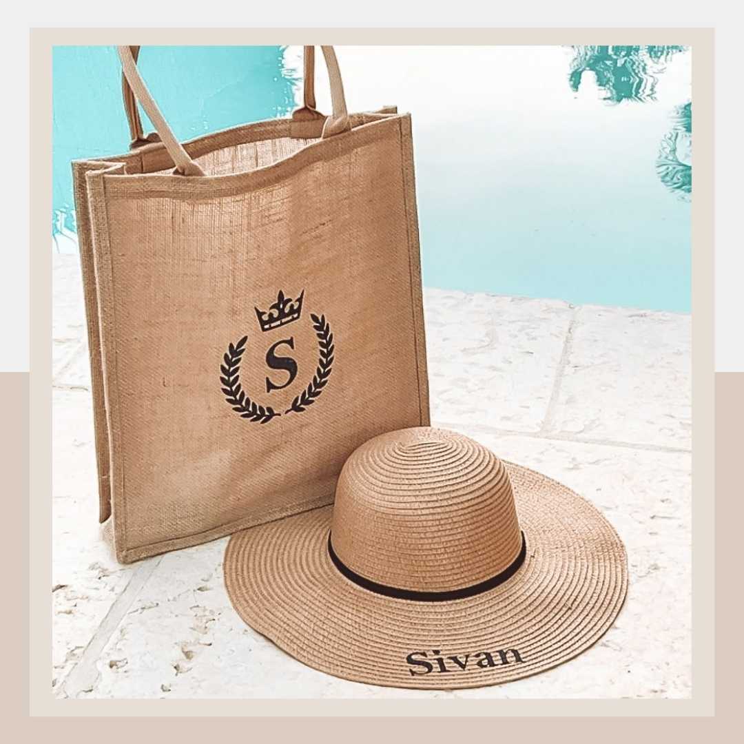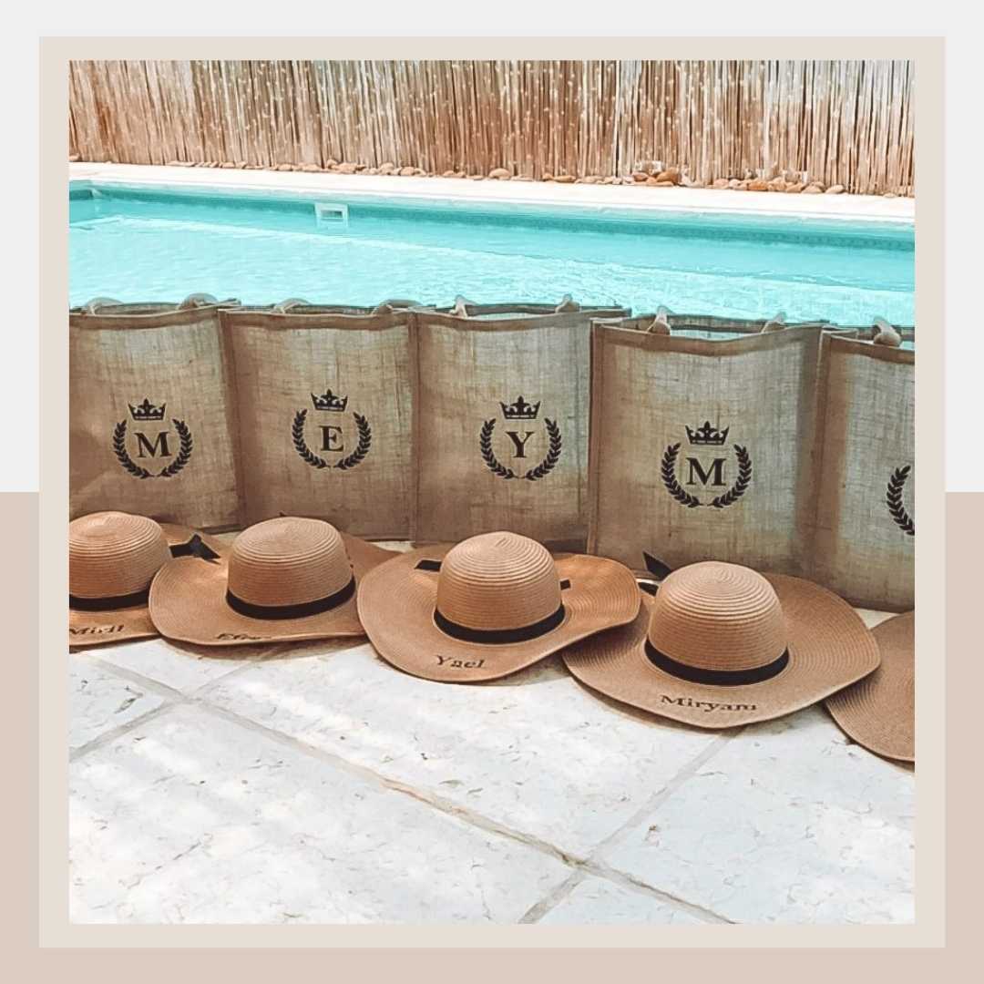 - כובע קש איכותי: רחב שוליים, מספק הגנה מהשמש ועיצוב אלגנטי עם מגע אישי